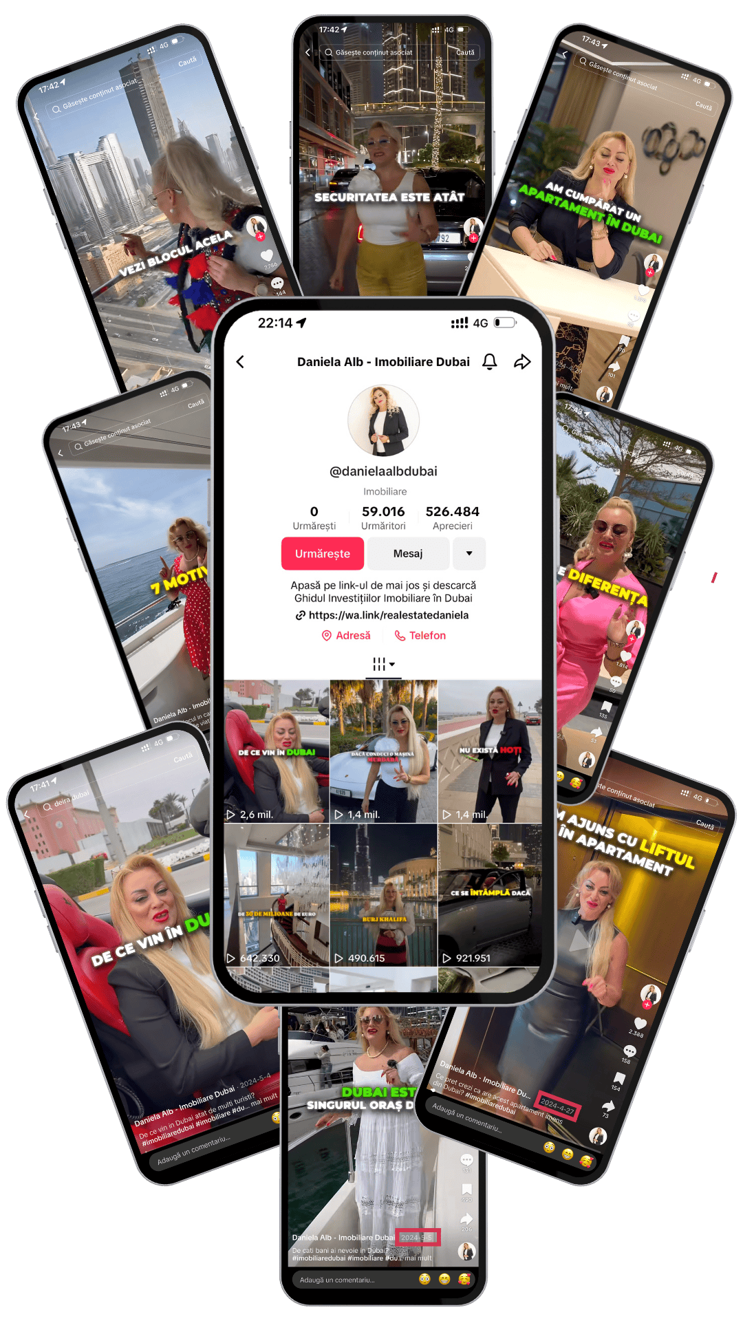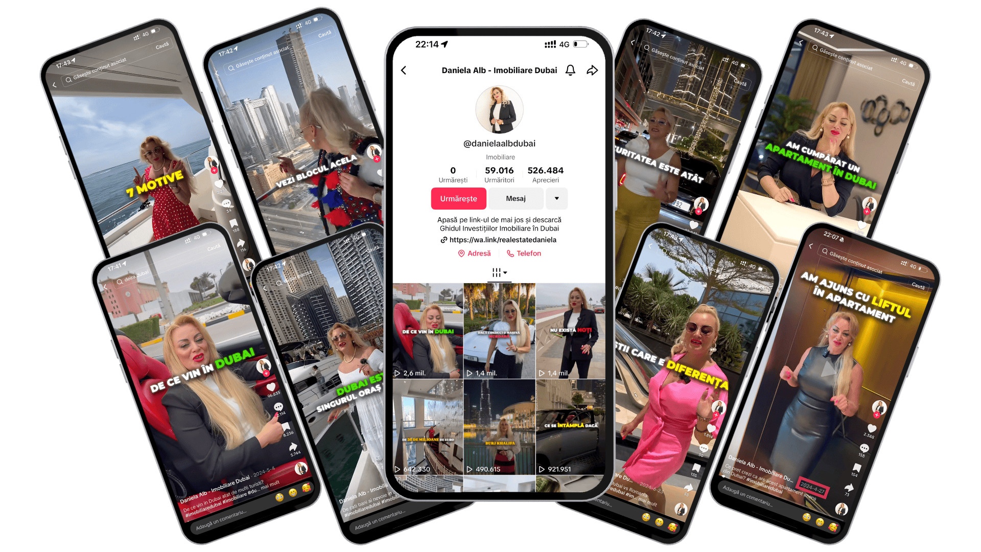 “Nu mă așteptam ca de când ne-am cunoscut să reușesc atât de rapid, cu atât de puțin efort, să am sute de clienți online și să fiu recunoscută pe stradă chiar și în Dubai.” -Daniela Alb